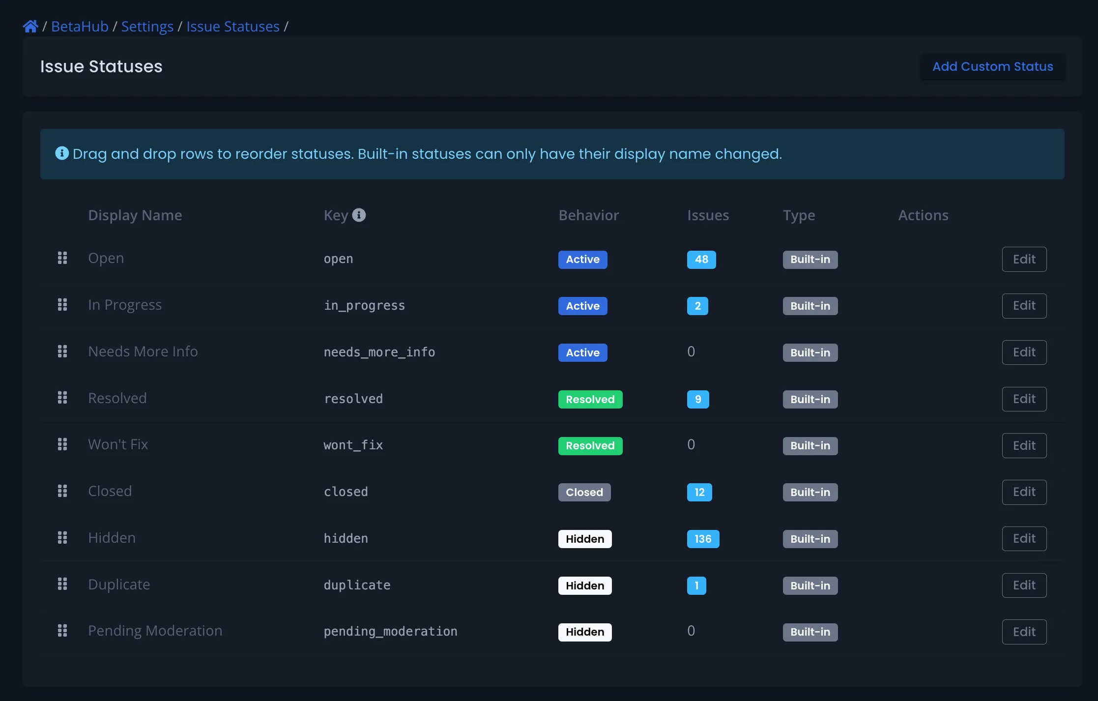 Custom Issue Statuses