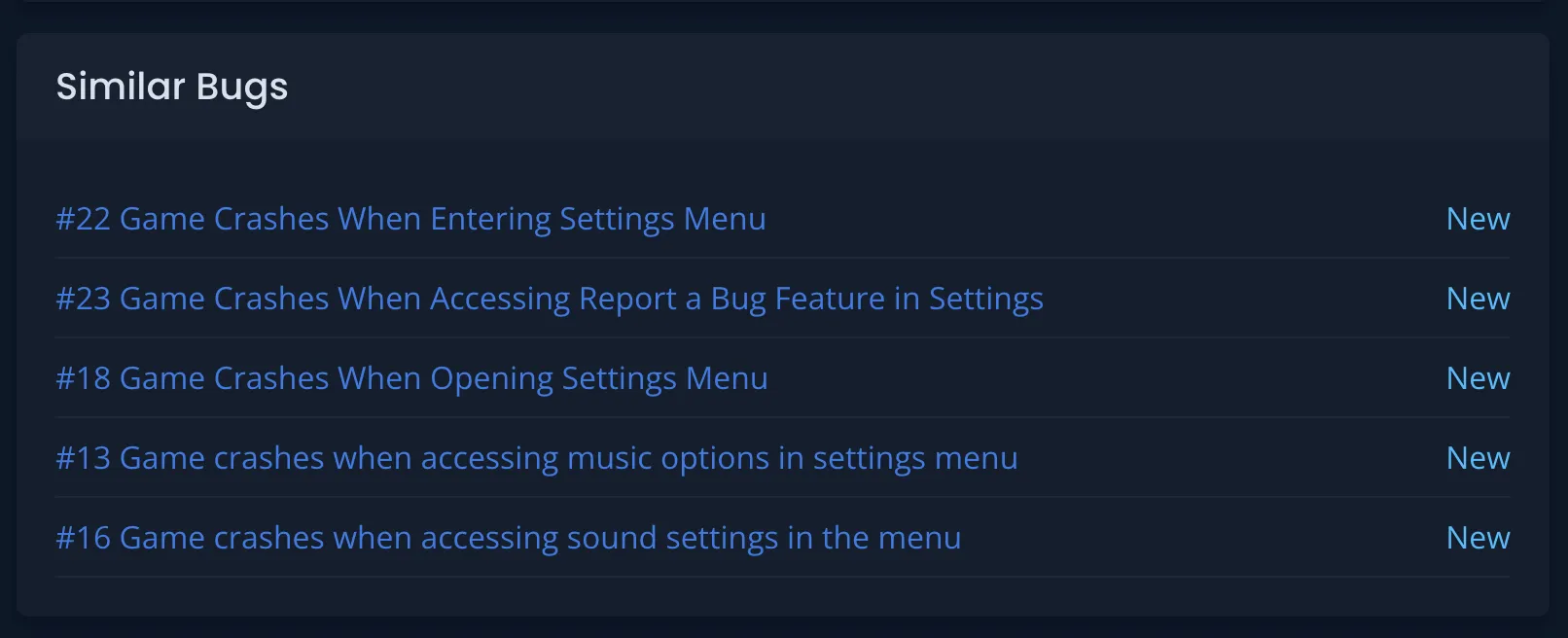 Issue pages now show a Similar Bugs section. BetaHub uses vector search on titles and descriptions to surface related reports — including steps to reproduce.