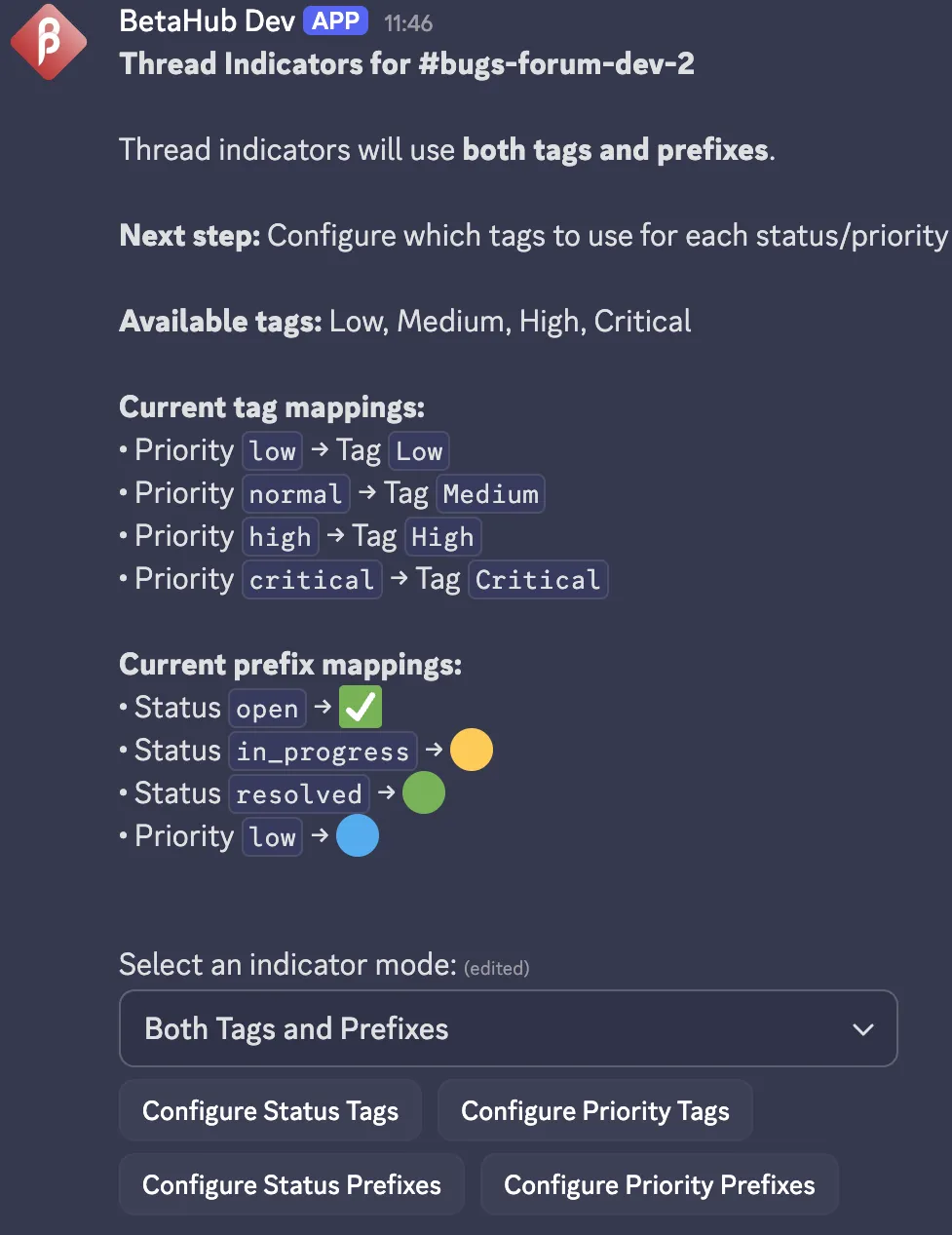 When the status or priority changes in BetaHub, the forum thread indicator updates automatically.